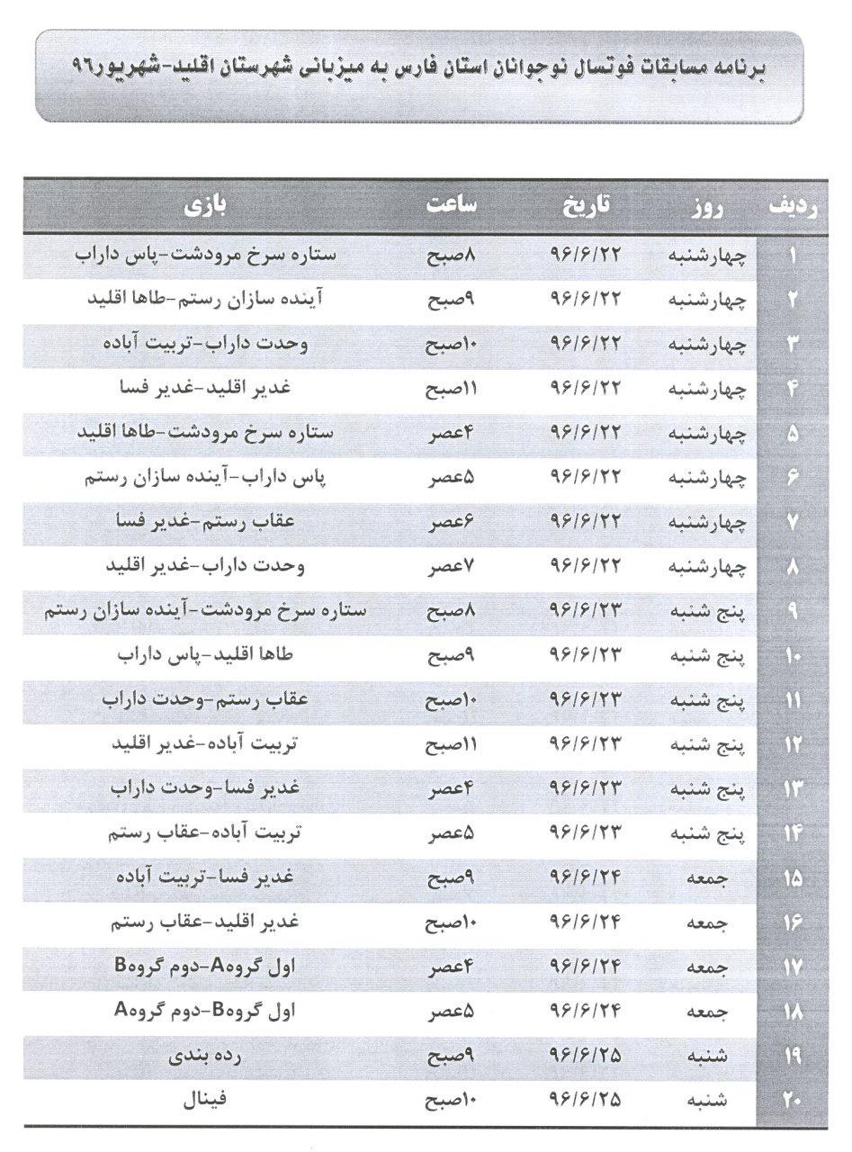 6 - چهارشنبه  22/6/96  5عصر  پاس داراب-آینده سازان رستم